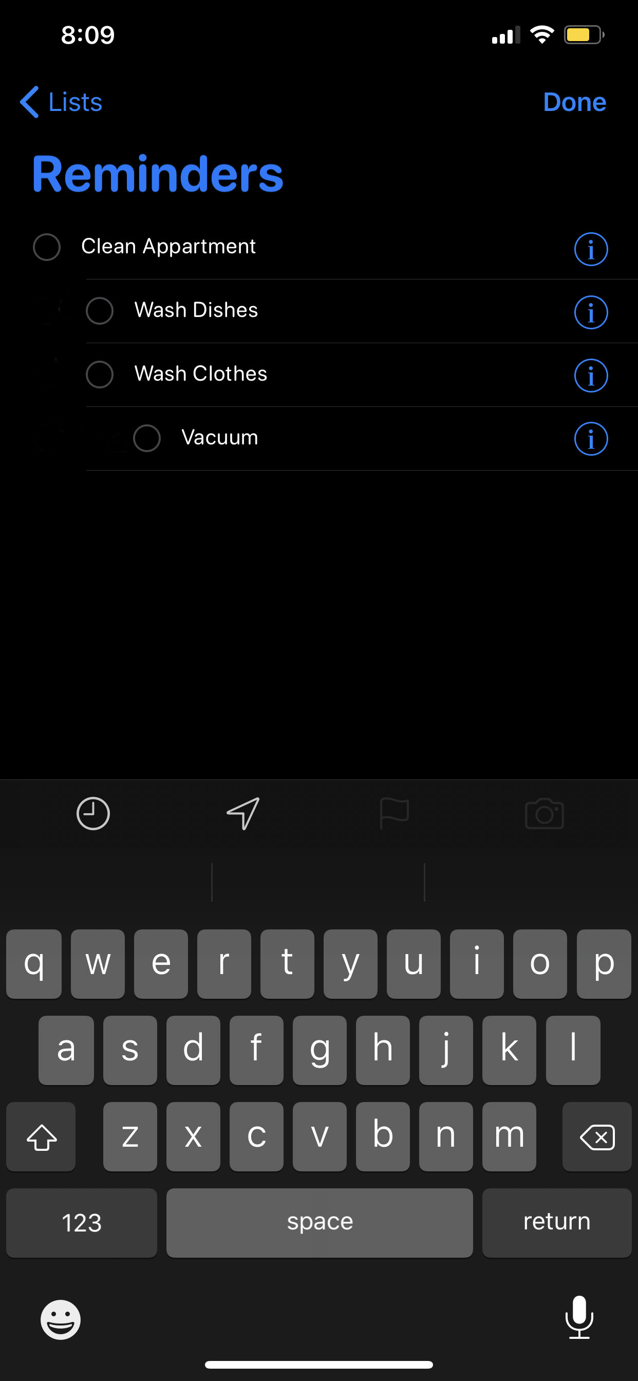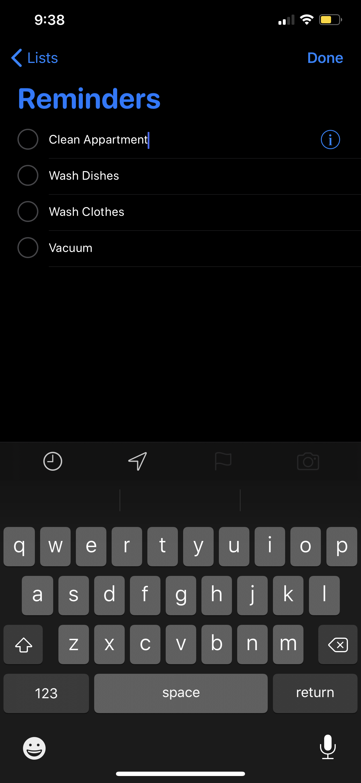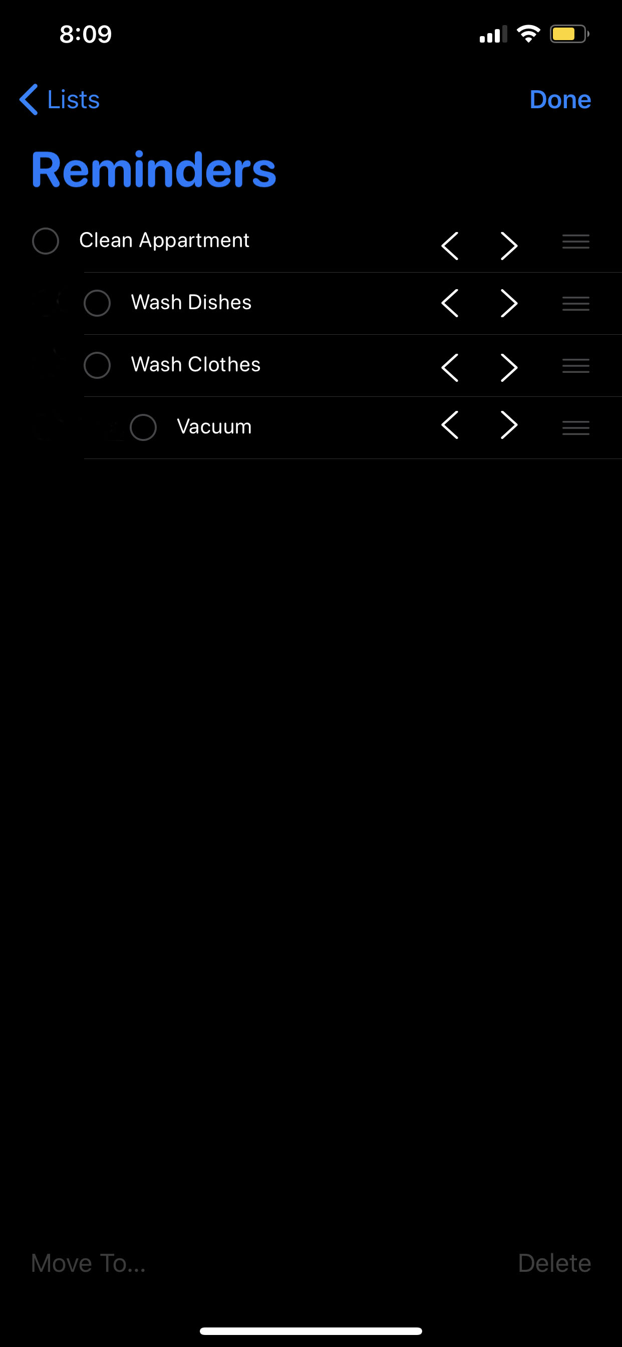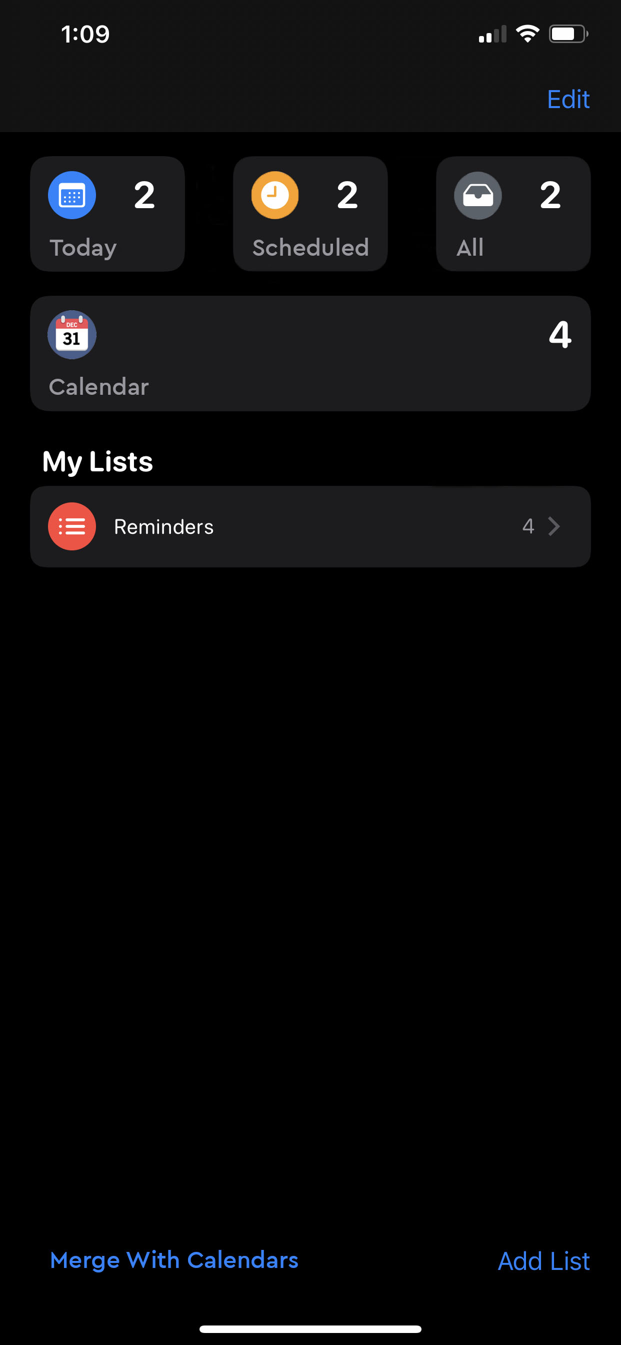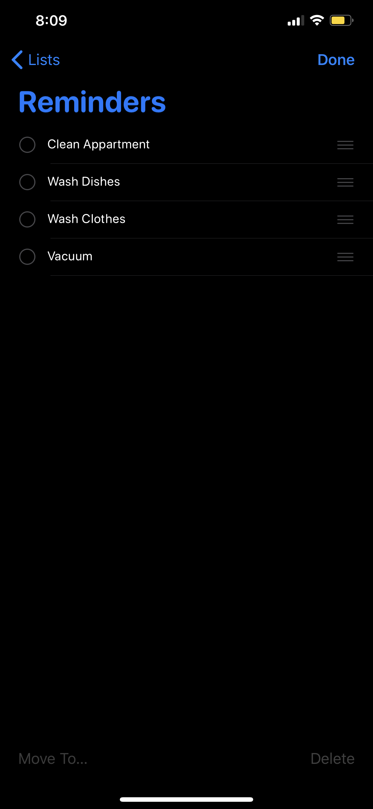 This is what the reminders app looks like when it is first opened. There is nothing wrong with the way they have it set up but it just needs better organization. If I were to have more lists how am I supposed to know what lists are in the other tabs.