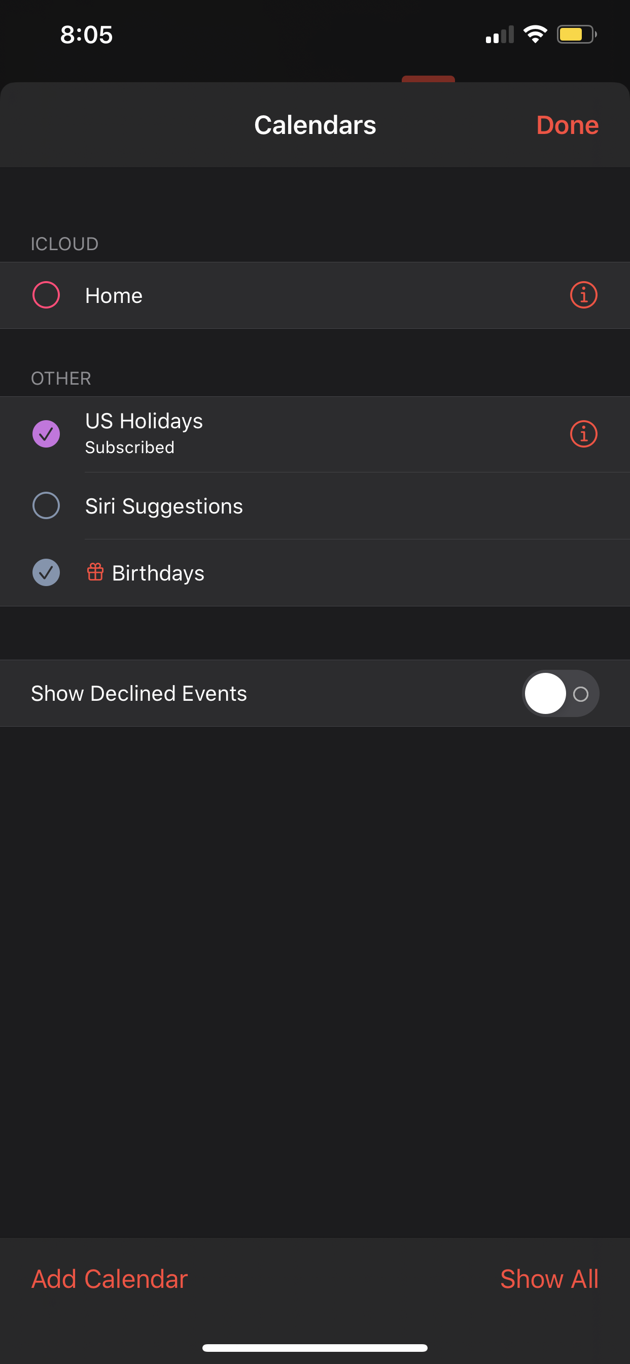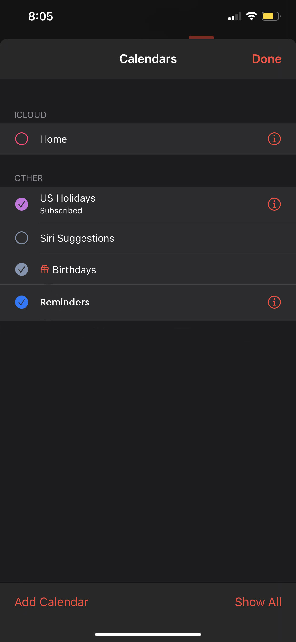 Some feedback I got from the users I researhed before were as follows. Add the ability to change entries in the calendar app and it would update automatically in the reminders app. Remove the done button when cliking on entries. It should only be used when moving them and adding hierarchy. On the calender list it should state somewhere that a certain list came from the reminders app. Likewise on the Reminders app it should state which lists were merged with the calendar app. Some said that it would be better to move the "Merge with Calendars" button to with inside the links. I think it makes more sense to put it there that everybody knows it is there. While none of them said they used the show declined events slider, they said to keep it as other users may want to use that. The most requested feature was the ability to change the order of the events in the calendar. Some may want to organize it by time or they may want to organize it based off of the groups. It wouldn't be confusing either as each group would be color coded anyways. The other big thing that they said needed to be added was a way to unlink the calender app and the reminders app if one so choosed to do so. Unfortunately I forgot to add color bubbles under the date. I also didn't know how to implement that if you had a ton of lists for that day.